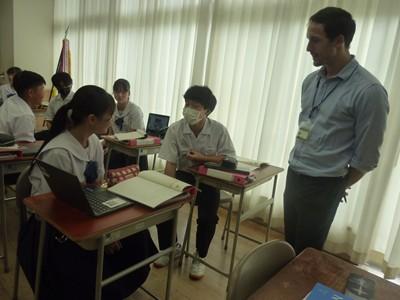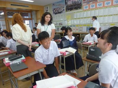 7日(火)、本校でかほく市ALT研修会があり、5時間目に3年3組で英語の公開授業が行われました。蔵谷教諭とALTのシャミークによるティーム・ティーチング授業でした。