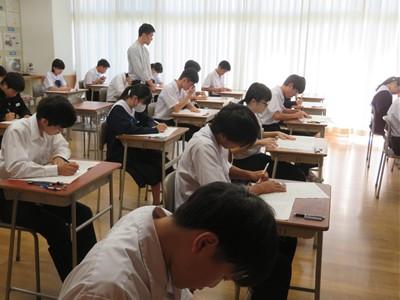 どのクラスの生徒も真剣にテスト問題に向き合っていました。1つでも多く答えが書けるよう、一生懸命に問題を解いていました。
