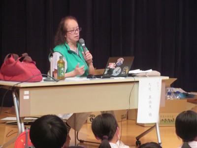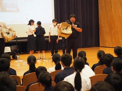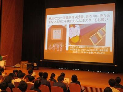 大月さんは、画像や実物を見せながら、実際の避難所の現状をわかりやすく教えてくださり、どのような課題があるのか学ぶことができました。そして、「今回の学習を通して、地域のために自分から動けるようになってほしい。」とお話されました。