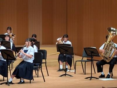 7日(土)午後、津幡町文化会館シグナスにて、郡市中学校吹奏楽交歓会が行われました。郡市6校の吹奏楽部が一堂に会し、コンクールに向けて練習している楽曲を演奏し、互いの技を披露しました。