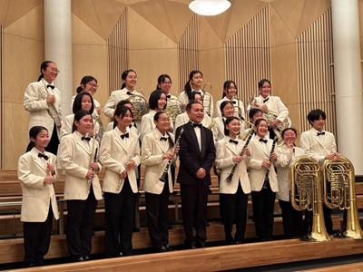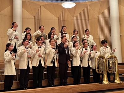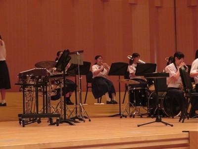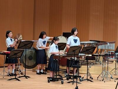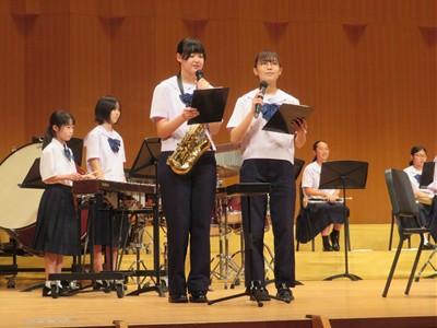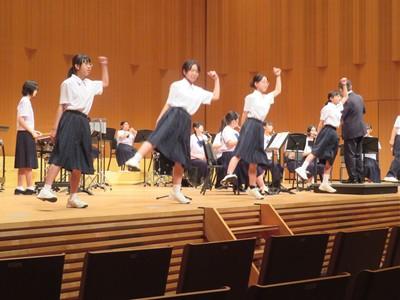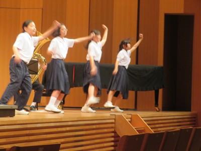 河北台中学校はコンクール曲を含め、①アット・サイト・マーチ、②水神龍蛙、③ジャンボリミッキー! の3曲を披露しました。ジャンボリミッキーの時は新入部員の1年生がステージ最前列で、かわいらしく、元気にダンスを見せ、会場を盛り上げてくれました。