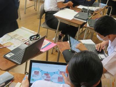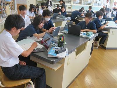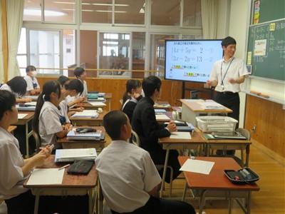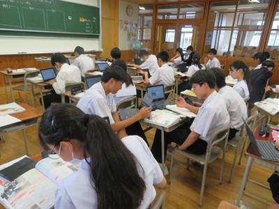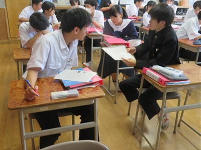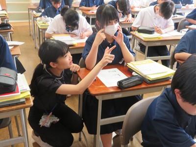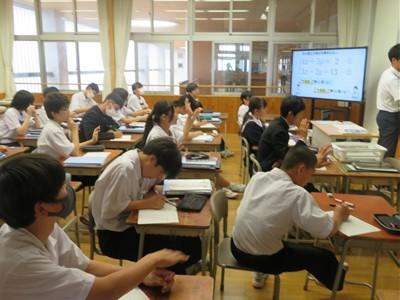 お客様がいても、いつもと変わらない様子で、みんな授業に真剣に取り組んでいました。それが河北台中の生徒ですね。さすがです!!