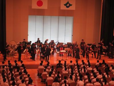 11日(水)午後、石川県芸術鑑賞推進事業(オーケストラ鑑賞)として、世界的に有名なオーケストラ・アンサンブル金沢(OEK)の皆さんの演奏を聴く機会をいただきました。全7曲の演奏を聴き、生徒たちは感動の渦に巻き込まれていました。初めてオーケストラの生演奏を聴いた生徒が多く、あまりの迫力に圧倒されていました。