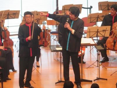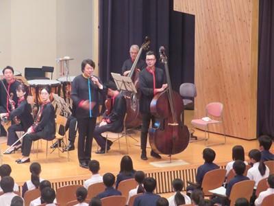 途中でオーケストラは4つのパート(弦楽器、金管楽器、木管楽器、打楽器)に分かれていることや、それぞれの楽器の紹介(名前や特徴など)と楽器の持つ音色を聞かせてくださり、演奏を楽しむだけでなく、楽器に対する知識を深めることができました。