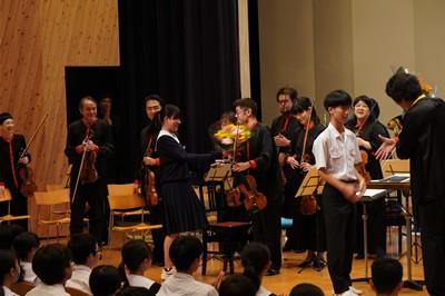 最後に、生徒を代表して、生徒会執行部の高鍬さんと森下さんが、お礼の言葉とともに花束をお渡ししました。