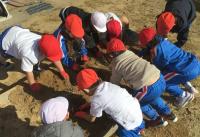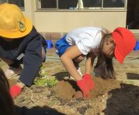 1・2年生が、5月にJAあぐりの方と一緒に植えたさつまいもを収穫しました。子どもたちは、さつまいもを折らないように、慎重に掘っていました。顔より大きなさつまいもや不思議な形をしたさつまいも、沢山つながっているさつまいもなど、いろいろなさつまいもがあり、子どもたちは大興奮でした。収穫したさつまいもは焼き芋にして、みんなで食べる予定です。