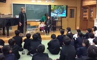 3~6年生が、5,6限目に黒崎土練り節ワークショップを行いました。保存会の方々にご指導いただき、歌と踊りに分かれて練習し、最後には仲間と息を合わせて土練り節を表現しました。黒崎土練り節の歴史や背景について学び、保存会の皆さんの思いに触れ、地域に受け継がれてきた伝統の大切さを実感するワークショップとなりました。
