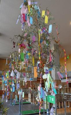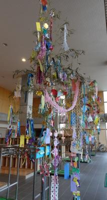 年に一度の七夕です。児童会・生徒会が呼びかけ、皆で飾り付けをした立派な七夕飾りが玄関に並んでいます。色とりどりの飾りと共に付けられた短冊には、様々な願い事が書かれています。「おじいちゃん、おばあちゃんに会えますように」「家族が幸せでいられますように」「テストの点が上がりますように」などなど・・・中には「宝くじで12億が当たりますように」と書かれた短冊も発見。どうか皆さんの願いが叶いますように!