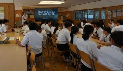 6限目に後期課程の3学年全員で合同道徳を行いました。公園など公共の場の決まりを考えることをとおして、自由と責任の関係に気づき、これから始まる夏休みの生活の仕方について意見交流を行いました。責任ある行動で、有意義な生活を送ってくれることを願っています。