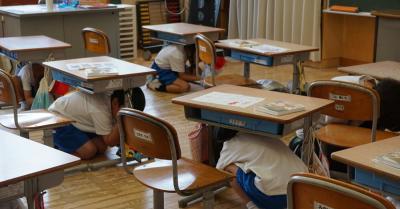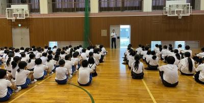 7月8日のシェイクアウトいしかわ(県民一斉防災訓練)と日がずれましたが、県が提供している訓練音源を使い、地震に対する訓練と火災による避難訓練を併せて行いました。児童生徒は、指示を聞き素早く行動することができていました。いざという時に自分の命を守ることができるよう、日頃から気をつけていたいことです。