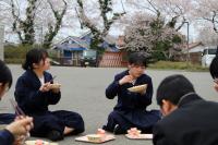 4月11日(金)後期課程では恒例行事のお花見給食がありました。桜の下で食べる給食は、普段ランチルームで食べる給食よりも美味しそうな様子でした。