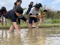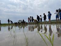 5年生が総合的な学習の時間「米プロジェクト」として、田植えの体験を行いました。田んぼの先生から説明をよく聞いたあと、慣れない水田に足を取られそうになりながら頑張って苗を植えていました。秋にも収穫体験を行わせていただく予定です。自分たちが植えた稲が成長し、自分たちで刈り取るのが楽しみです。