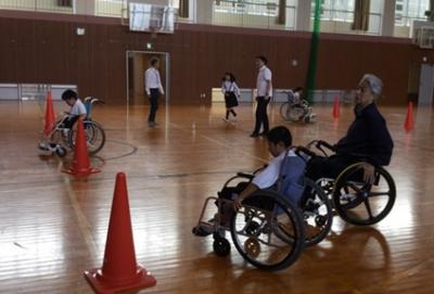 4年生が、総合的な学習の時間に福祉の学習を行っており、「みんなでやさしいまちづくり教室」を行いました。社会福祉協議会の方や車いすで生活されている方に来校いただき、車いすを体験したり、お話を聞いたりしました。実際に車いすに乗って移動してみることで、実感できたようです。このような学習をとおして、人の気持ちがわかる優しい人に育ってくれることを願います。