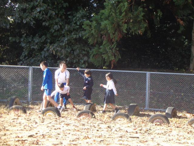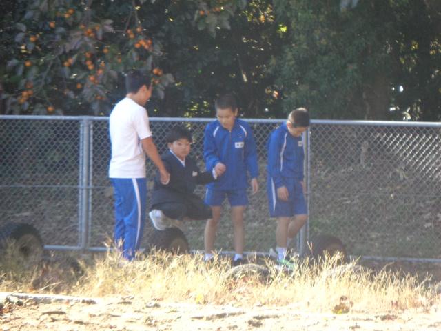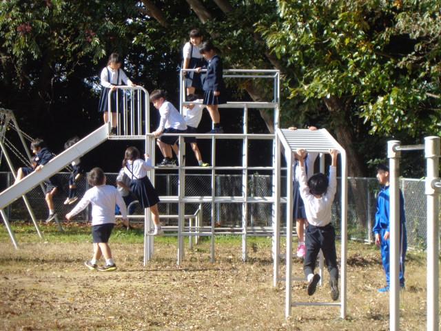 今日は、小春日和でした。いつもよりも長い昼休みの「のびのびタイム」では、外で遊ぶ子供たちがたくさんいました。4年生が総合的な学習の時間に作った「大型的当て」をしたり、広場でジャングルジムやブランコで楽しんだり、運動場ではサッカーをしたりしていました。広場では、6年生が1年生に雲梯やタイヤ跳びの仕方を教えたり補助をしたりしている姿にほっこりしました。金津っ子は、下級生を思いやることができる優しい心が育っています。
