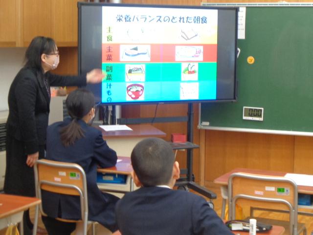 坂井栄養教諭を講師に迎え、2年生では「給食(食事)のマナー」をテーマに、食事マナーの極意として、「姿勢」「心づかい」「感謝の心」について話をしてくださいました。、4年生では「好き嫌いせずに食べよう」をテーマに、今日の給食献立でバランスの良い栄養の取り方を考えました。6年生では「中学校に向けて(給食について)」をテーマに小学校と中学校での給食の違いについて教えてもらい、これからどんどん体が成長していく上で大事な栄養と量について教えていただきました。「食」についての意識を高めることができました。