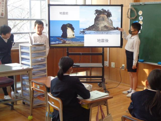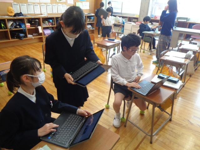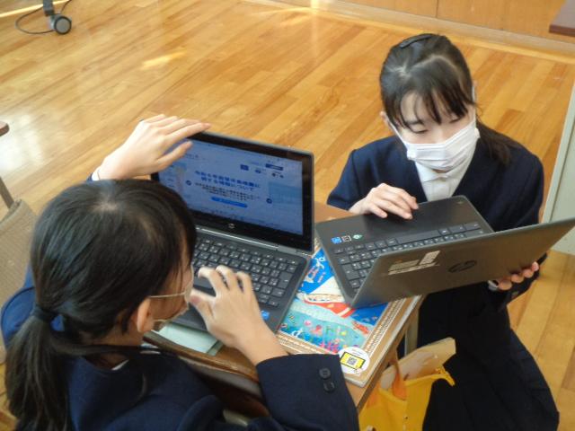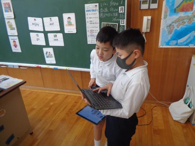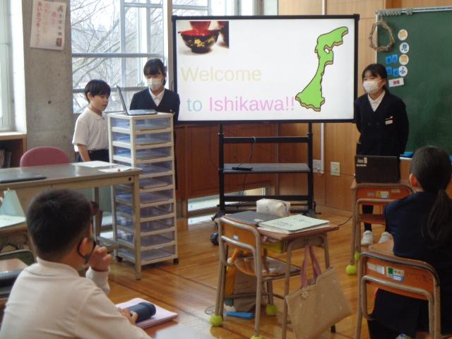 多文化ふれあいプラン「World communication」では、市内のALTの先生方に来ていただきます。5年生はその時に、「Welcome to ishikawa」ということで、石川県内の自分が行きたい場所ややりたいことを紹介します。「I want to go to notojima aquarium.I want to see dolphin show.」など、英語で紹介します。グループで相談し合いながらどんな風に話すとより伝わるのかを考え練習していました。最後は他のグループの発表を聞いてアドバイスし合う中で、伝えるためには声の大きさ、表情、ジェスチャーも大切ということが分かりました。