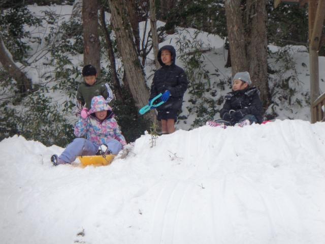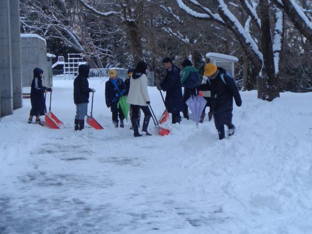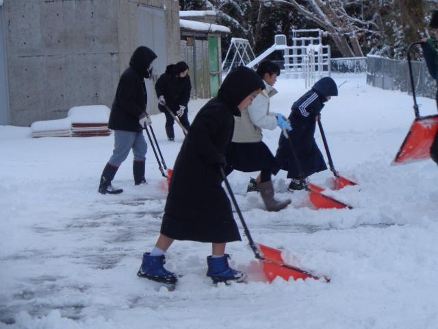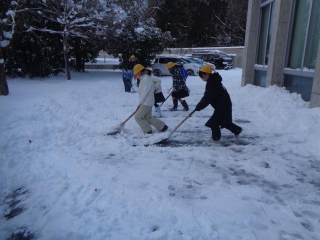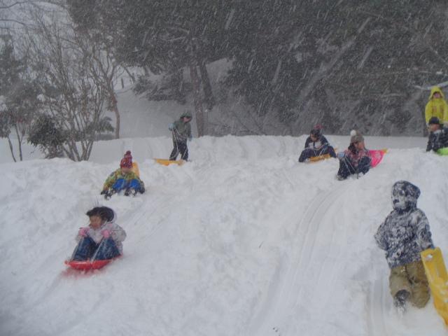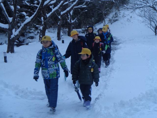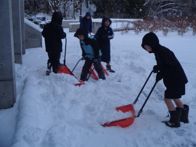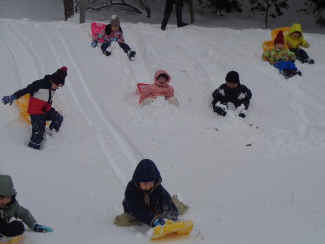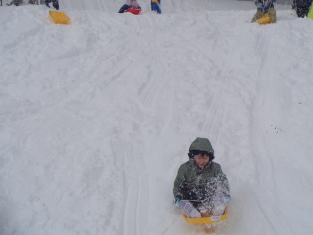 雪がたくさん降りました。朝は、登校してきた子供たちが自主的に雪かきをしてくれました。自分たちが歩く道、給食配送車が通る道です。毎年、たくさんの雪が降ると自分たちで雪かきをすることが伝統の一つです。6年生が率先して取り組む姿が下級生に受け継がれています。とても助かります。雪は、子供たちにとってわくわくする冬の風物詩です。今日も学校横の金津の森の丘でそり滑りや雪だるま作りをしました。そり滑りでは、初めは滑り方が分からなかったりちょっと怖いなと感じている1年生もいましたが、次第にコツを身に付けて勢いよく滑る様子が見られました。思う存分雪を楽しんでほしいです。