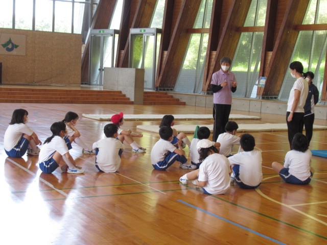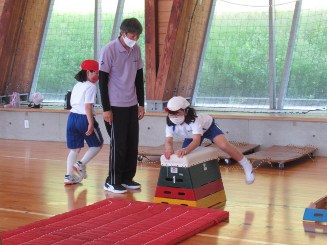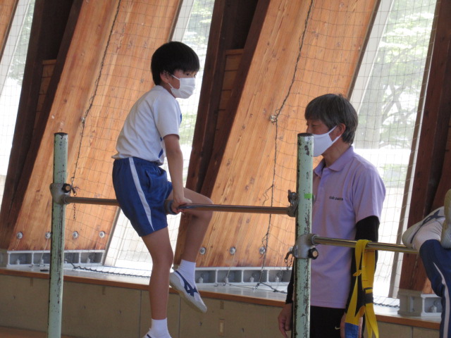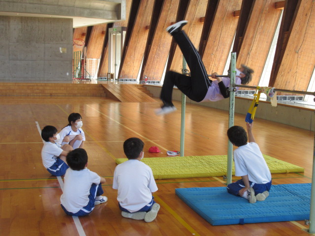 5月23日、西田さんにとび箱と鉄棒を指導していただきました。一人ひとりに「こうしたらいいよ」とアドバイスをしていただき、みんな少しずつ、できることが増えてきました。「できない状態は、技のどこかのピースが足りていない状態。練習を続けてピースがはまった時、ある日突然できるようになる。それを楽しみにして、頑張って練習してほしい」とお話しをしていただきました。本番まであと12日。ピースがはまるよう、日々の練習を頑張りましょう!