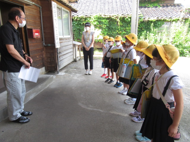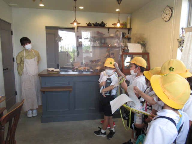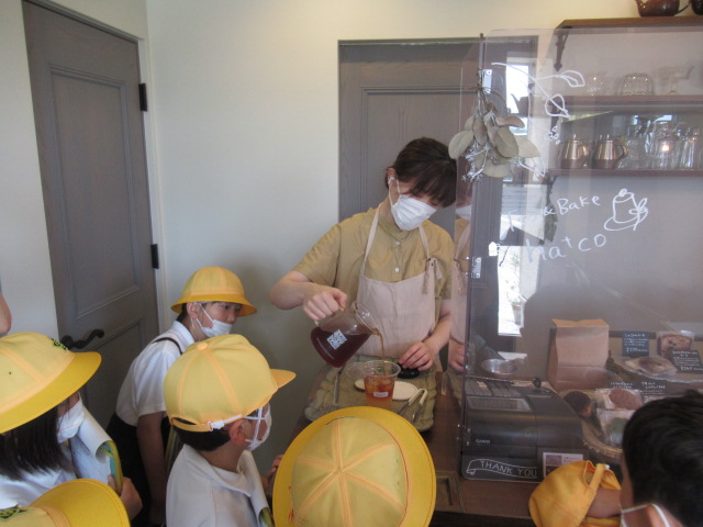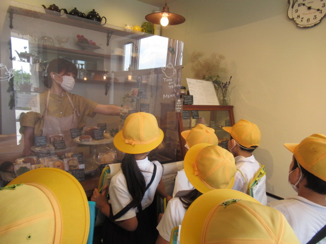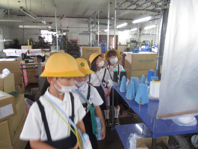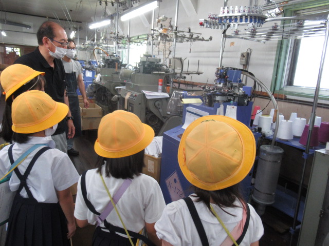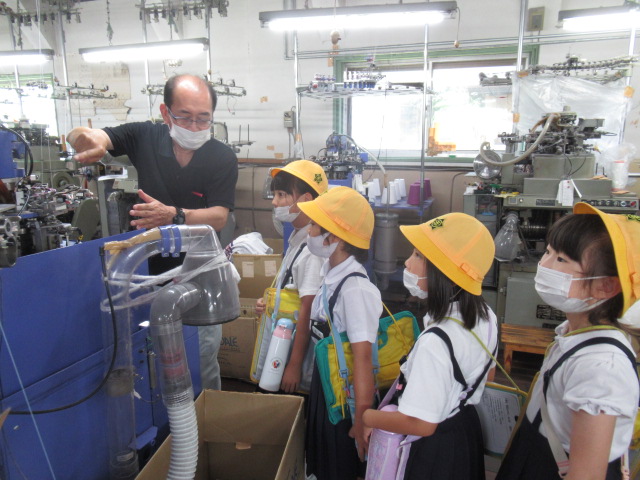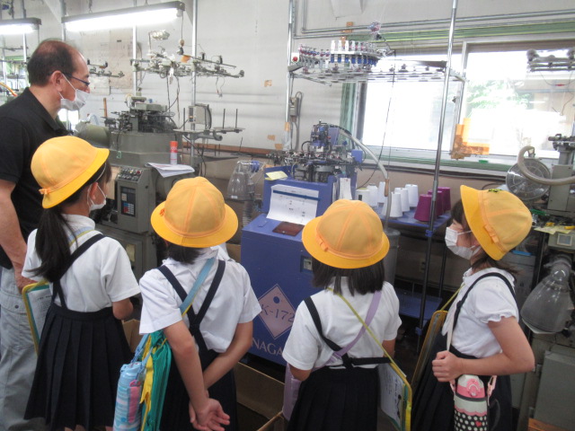 2年生が横山にある梶谷ニット工業所と、お茶とお菓子のアトリエha+coへ見学に行きました。 子ども達はそれぞれ用意した質問を持って、意気揚々と向かいました。 梶谷ニット工業所では、作っているものや、何種類あるか、機械で何をするのか等聞いた後、くつしたとリストバンドが出来上がる様子を見せていただきました。たくさんの糸が編み込まれて、大きな音と共に一瞬で飛び出てくるリストバンドに、子ども達はとても驚いていました。 お茶とお菓子のアトリエha+coでは、お店に並んでいるマフィンやケーキに目を輝かせながらも、一生懸命お話を聞きました。一番手間のかかるお菓子はクッキーだと聞き、家で作ったことのある子ども達は「ええー!?」と驚いきつつも、工程を聞くと大変手間のかかっているお菓子なのだと納得していました。また、グレープフルーツのセパレートティーを作る様子を実演で見せていただきました。 たくさんの学びと共に、梶谷ニット工業所ではリストバンドを、お茶とお菓子のアトリエha+coではクッキーをおみやげにいただきました。ありがとうございました。