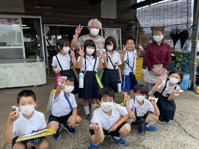 9月2日(金)、3年生は今本ぶどう園さんへ見学に行ってきました。ルビーロマンの畑をじっくり見学させていただき、事前に勉強した内容を踏まえた質問にもたくさん答えていただきました。ルビーロマンとデラウェアの甘さや収穫時期の違いにや、色と味の関係・砂丘地農業試験場とぶどう園の関わり・ぶどう園からの販路・JAとの関わりなど、より深い質問をしていました。おみやげになんと、ルビーロマンをひとり2粒もいただきました。新学期が始まって早々に、子ども達にとってとてもうれしい体験となりました。