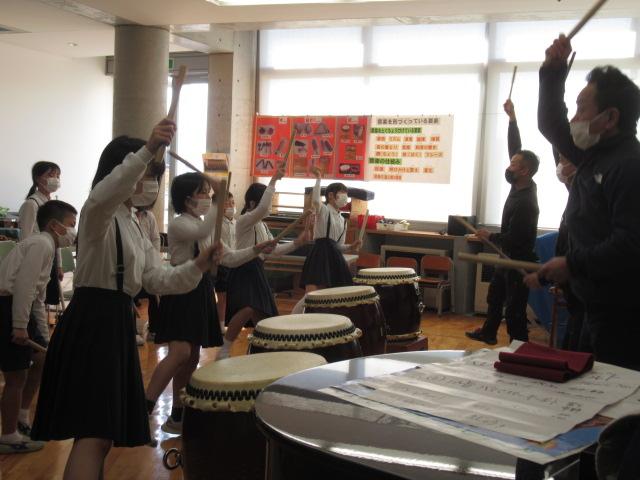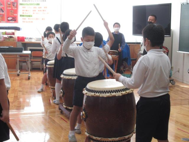 金谷クラブの皆さんに、以前教えていただいた「秋祭り」を、さらに良くなるよう指導をしていただきました。 「常にかっこつける」ことを意識して、バチを高く上げる、締めのポーズをきめる、待機している間も掛け声などをどんどんする、などたくさんのことを教えていただきました。 練習の成果は収穫感謝祭で披露します。本番が楽しみですね。