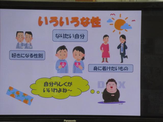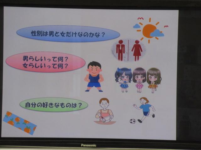 たんぽぽ助産院より、助産師の塚脇京子さんをお招きし、性や命の誕生、思春期、LGBTについてお話していただきました。男性・女性が成長するにつれて起こるホルモンによる体の変化や、赤ちゃんが生まれるまでにお母さんだけでなく、赤ちゃんも大変な思いをしていること、思春期に起こる心と体のアンバランスさによる不安定な気持ち、体の性にとらわれない多様な性のあり方についてなど、たくさんのことを教えていただきました。