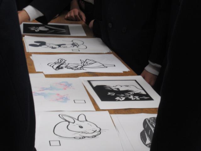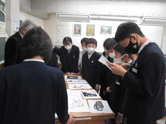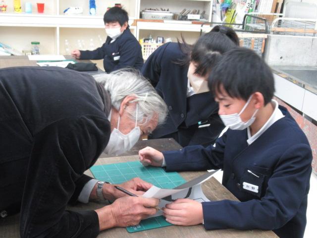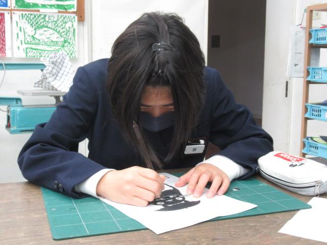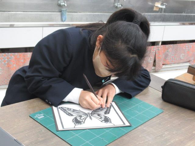 スクールカウンセラーの森先生に、6年生が切り絵を教わりました。干支のうさぎやスポーツカー、パンダ、蝶、アニメのキャラクターなど、森先生が用意してくださった図案から好きなものを選び、デザインカッターを使って真剣に取り組んでいました。細かい部分は切り離してしまわないよう慎重に、息を止めるようにカットしていました。こちらの作品は卒業制作の一つになります。卒業式の日の展示が楽しみです。