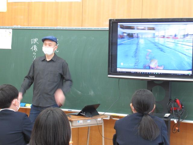 1月20日(金)、映像クリエイターの酒師精一郎氏をお招きし、6年生が映像クリエイターのお仕事や、この職に就くまでの経緯などのお話を聞きました。酒師さんは昨年度、金津小のPR動画を作成してくださった方で、その時の失敗談や、動画撮影の際の苦労などの裏話も教えてくださいました。以前は旅行会社に勤めていましたが、コロナ禍を機に、新しいことを始めてみようと3年前から動画制作を始めたそうです。新しいことに挑戦することのおもしろさ、大切さを学ぶことができました。