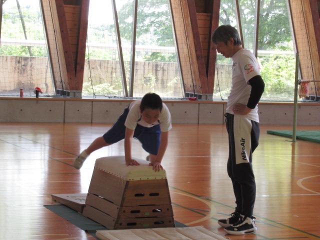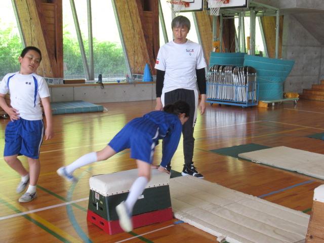 5月16日(火)、4年生が西田健一さんによる2回目の器械運動の指導を受けました。とび箱がもう少しで跳べそうな子は小さなとび箱で踏み込みと着地の練習をみっちりと教えていただきました。すると大きなとび箱をすんなり跳ぶことができました!得意な子はフォームをきれいにする方法を教えていただきました。子ども達の「できた!」という表情が輝いていました。