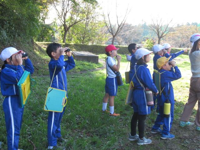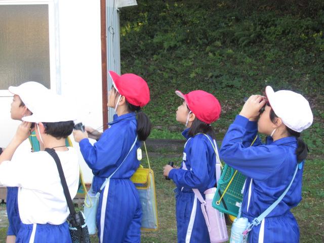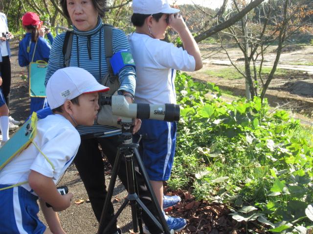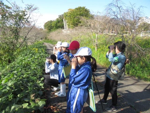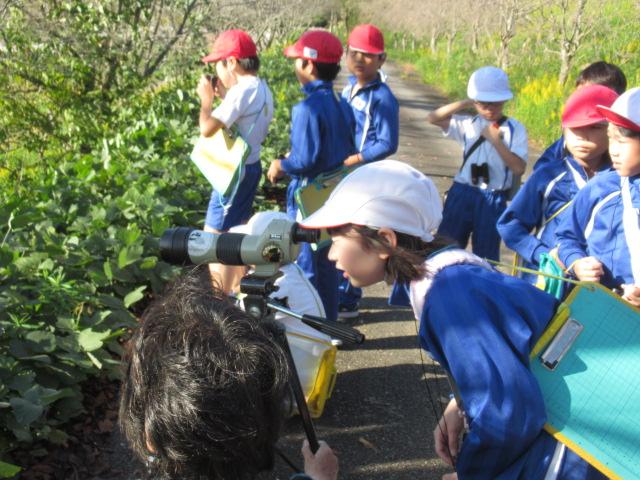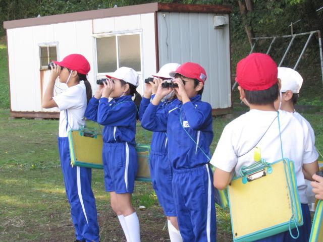愛鳥モデル校の活動の一環として、野鳥の会石川支部長の白川先生をお迎えし、秋の野鳥観察会を行いました。双眼鏡を持ち、学校の敷地内を散策し、ノスリ、ウグイス、ヒヨドリ、ダイサギ、シジュウカラなど、9種の野鳥に出会うことができました。ウグイスの鳴き声が春とはちがうこと、トビとノスリの見分け方、ダイサギがどのようにえさを捕まえるのかなども教えていただきました。野鳥に興味をもつ良い機会となりました。