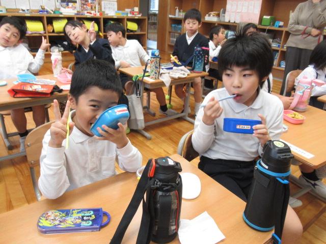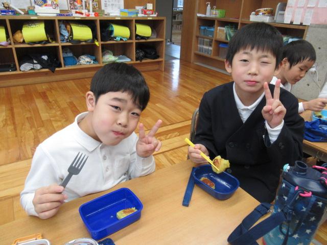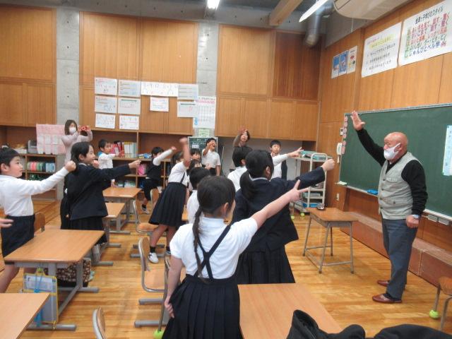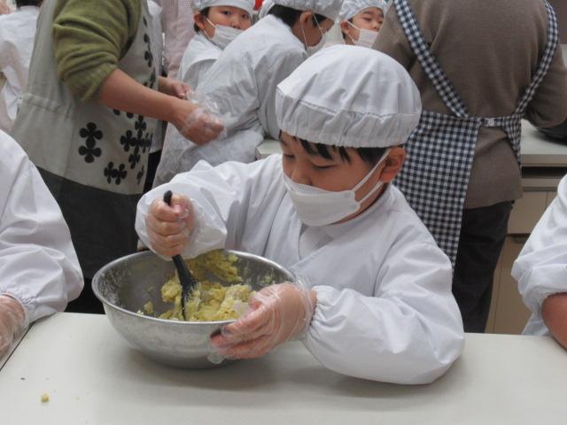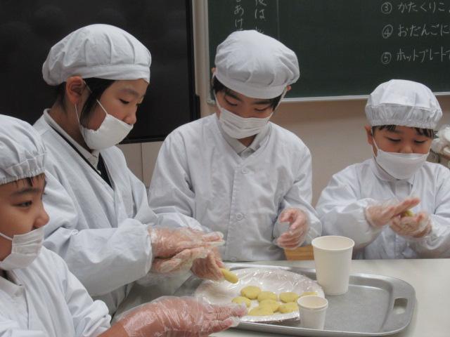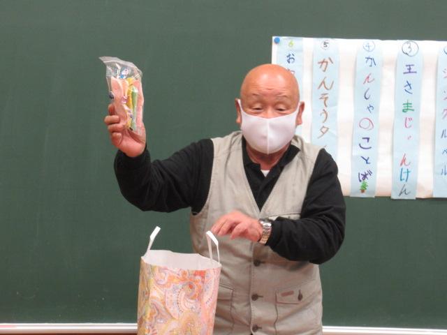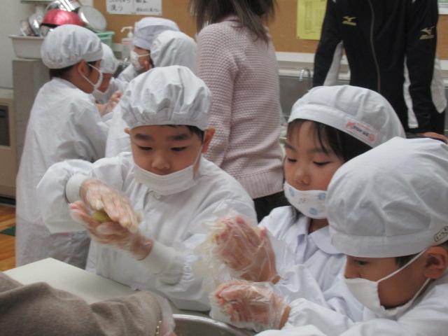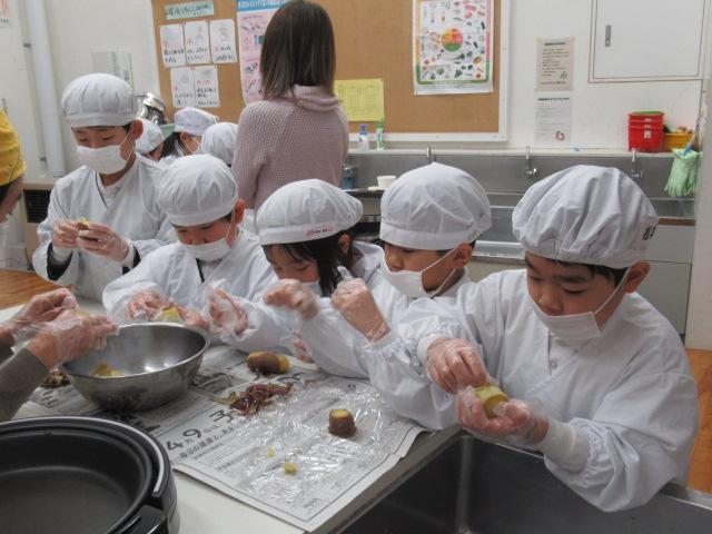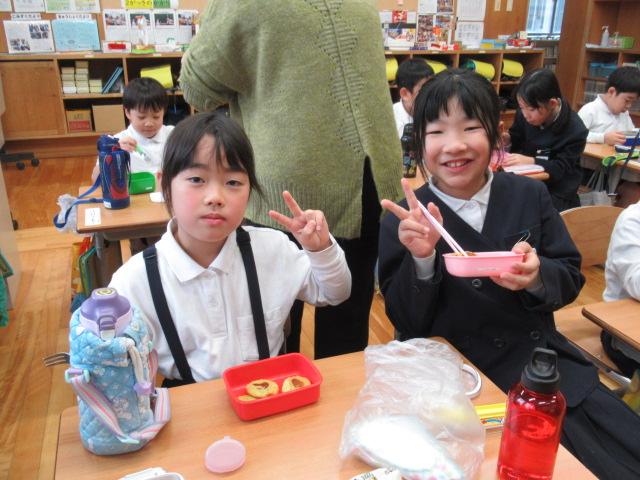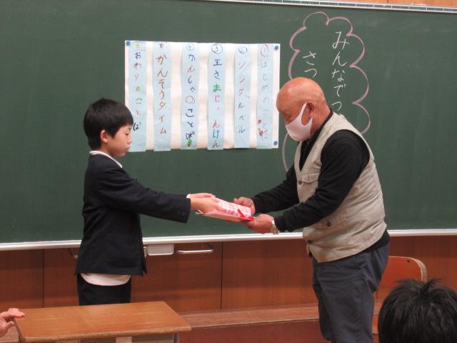畑の先生である西東さんに感謝の気持ちを伝えるパーティーを開きました。そのために子ども達は、西東さんに教えてもらいながら畑で収穫したさつまいもを使い、さつまいももちを作りました。完成したさつまいももちを西東さんと食べて、ジングルベルの曲に合わせたダンスの披露や、王様じゃんけんで盛り上がりました。西東さんにおみやげと、感謝のお手紙を渡しました。西東さんからは、お手製のかきもちを1・2年生全員分と、職員の分までいただきました。西東さん、いつも畑のお世話をしてくださり、ありがとうございます。
