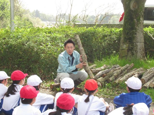 4/17(水) 金沢森林組合河北支所の方々にご協力いただき、金津の森に原木しいたけを設置しました。 子どもたちは、金津の森の入り口から金津わくわくハウスまで、一人一本ずつ楽しそうに運び、設置した後は森林組合の方が、しいたけがどんな環境で育つか、いつ頃収穫できるかなど、お話しをしてくださいました。 春に採れるしいたけは「はるこ」、秋に採れるしいたけは「あきこ」と呼ぶそうで、子どもたちは木についていたしいたけを「はるこちゃんだ~!」と呼び、森の中は賑やかな声でいっぱいでした。 これからしいたけがどんな風に生長していくか、楽しみです。