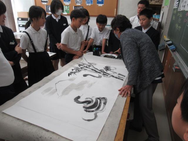 5/15(水)吉田佐蘭先生を講師にお迎えして、6年生が水墨画に挑戦しました。 来年の干支の巳を描きましたが、絵の具と違い墨の濃淡だけで表現することに、最初はどきどきしたようでしたが、最後には一人一枚仕上げていました。 とてもかわいいヘビばかりでした。