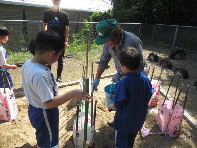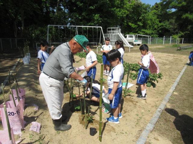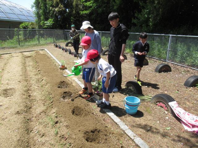 先週、畑の先生西東さんに植え方を教えてもらい、そよかぜ・ひまわり学級、2年生が夏野菜を植えました。 今年はかぼちゃやスイカなど、例年とは違った野菜を植えました。 夏になり収穫するのが楽しみです。 西東さんは、子どもたちが植えた苗をとても丁寧にお世話をしてくださいます。 いつもありがとうございます。