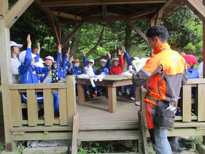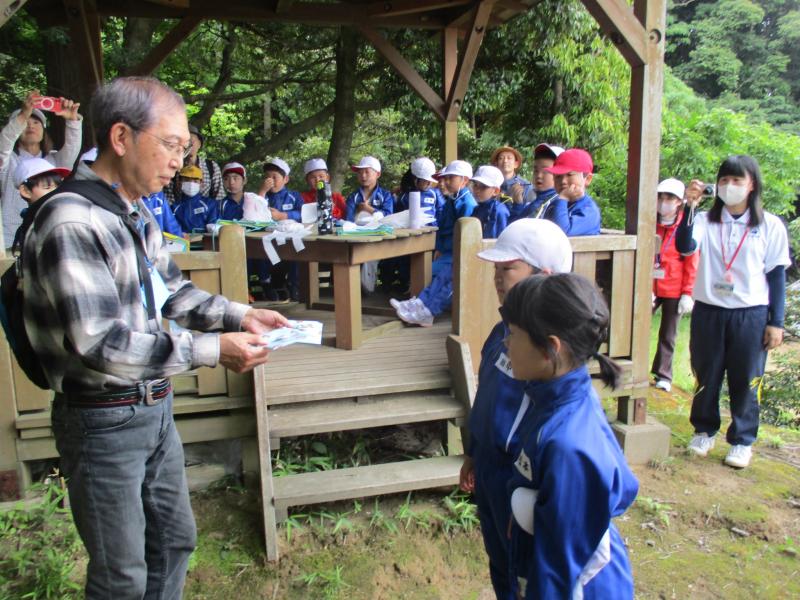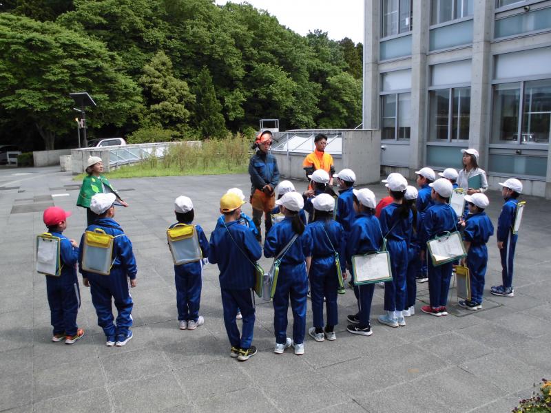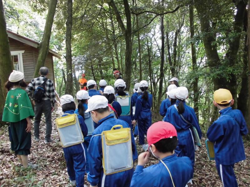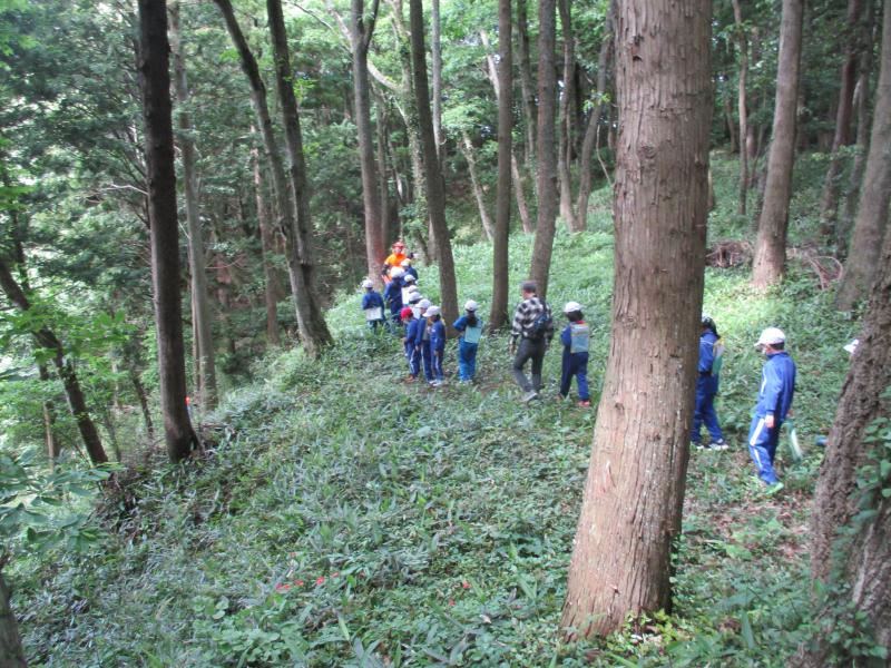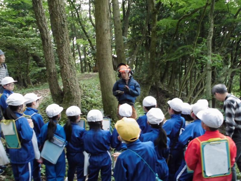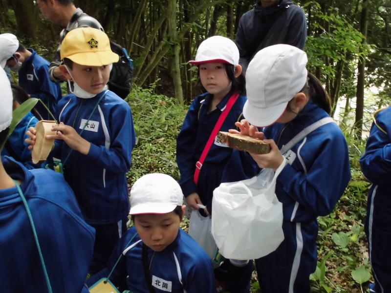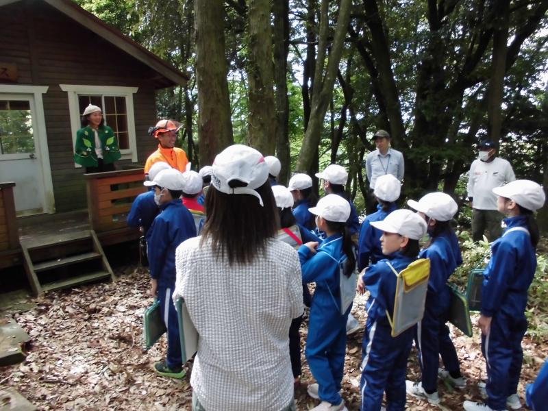 5月30日(木)に3,4年生金津の森プロジェクト「森はすごい」がありました。森林組合河北支所の皆さん、金津の森プロジェクト実行委員の皆さん、保護者の方々などの協力を得て行いました。初めにわくわくハウスまわりに置いてあるシイタケの原木の様子を観察しました。次に、木を伐採するにあたって、なぜその木を伐採するのかを考えたり、道具や服装の説明を聞いたりした後、伐採の様子を見学しました。質問タイムの後、今日の記念に缶バッチをいただきました。人の手入れが入ることで木がよりよく育つことや安全を第一に作業を進めていることなどを学ぶことができました。児童たちは、木や森林のことへ理解を深め、森林に携わる人たちの仕事についての興味を高めたようでした。ご協力ありがとうございました。