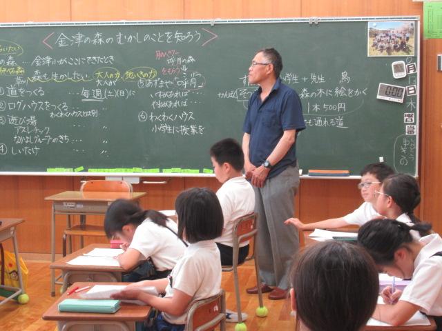 6/13(木) 余地にお住まいの中田善和さんを講師にお迎えし、金津の森の中にある「あずまや 呼月」について、建てたいきさつや、なぜ「呼月(こげつ)」と名前をつけたかなどお話ししていただきました。他にも、森の中を整地したこと、ご自分の子どもの頃の金津の様子についてもお話ししてくださいました。
