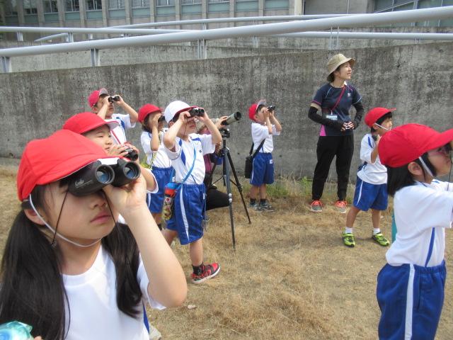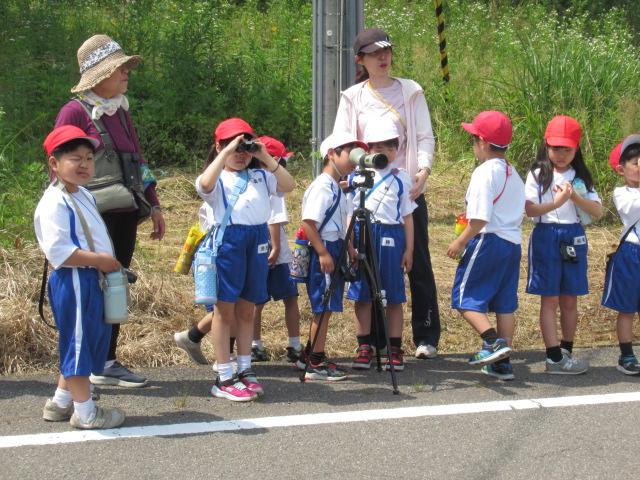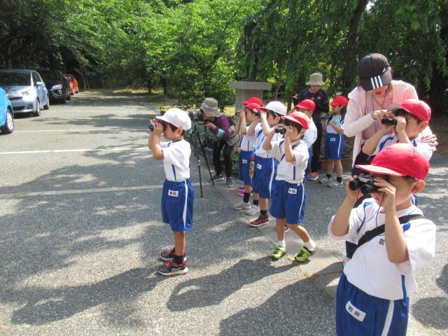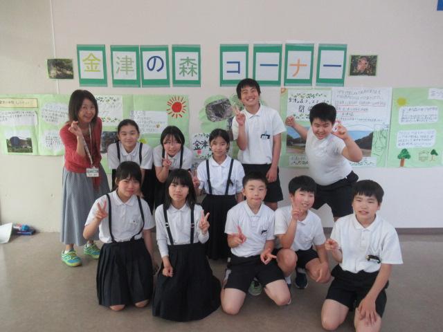 6/9(月)1年生の野鳥観察が、日本野鳥の会石川の白川郁栄さんを講師にお招きし行われました。お天気にも恵まれ、1年生はゆっくり学校周辺を歩きながら、普段鳴き声を聞くことがあっても姿のわからない野鳥の姿を、見て知ることができました。この日は、サンショウクイ、ホトトギス、ヒヨドリ、コゲラ、オオヨシキリ、アオサギなど、貴重な野鳥も見れ、かわいい野花の名前を教えてもらったりと、金津小学校ならではの活動ができました。6年生は以前から計画していた、市役所に「金津の森コーナー」を作り市民の方々に金津小学校の良いところを知ってもらおうと、たくさんの金津の森の紹介を掲示してきました。市役所正面玄関突き当りに掲示してありますので、ぜひご家族皆さんで見てみてください。この掲示は定期的に張り替えて、これから金津小学校の魅力をたくさん伝えていきます。