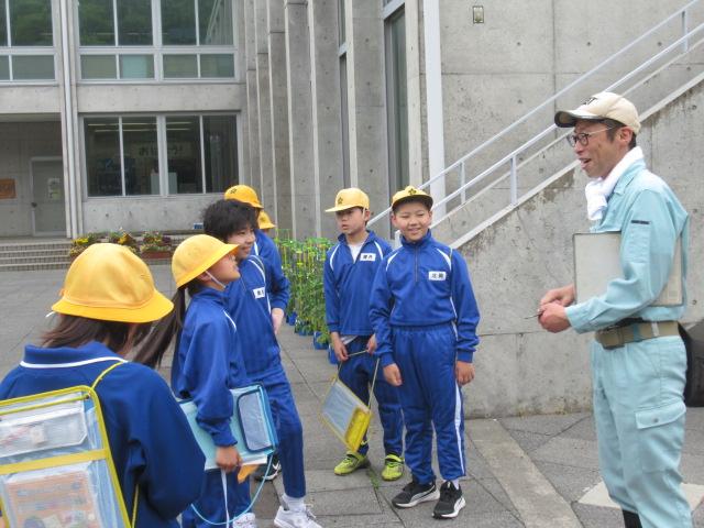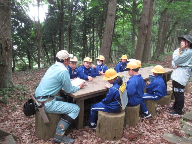 6/10(火) 4年生は今、金津の森の中でみんなで遊べる遊具を作りたいと計画しています。そこで樹木の専門家である金沢森林組合河北支所の髙野さんにいろいろな面でアドバイスをいただくことにしました。この日は4年生は自分たちがしたい遊びをいくつか考え、実際に髙野さんと森に入りどの樹木でどの遊びができるか見て回りました。結果はまだでませんが、これからいくつかの事を4年生は考え話し合って、実現していくと思います。何が出来上がるか、とても楽しみです。