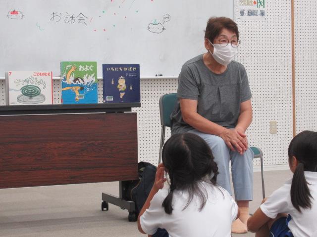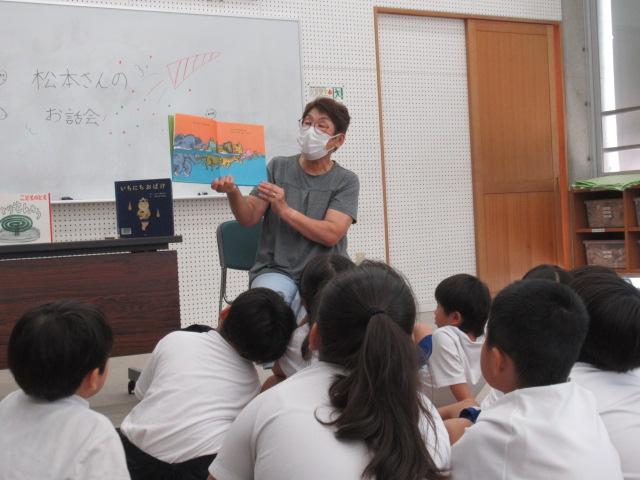9/17(水)昼休み時間に、狩鹿野にお住いの松本さんの読み聞かせがありました。 「かとりせんこう」「いちにちおばけ」「およぐ」の3冊を読んでくださり、夏らしいお話しで子どもたちは「こわくなーい」「できる!」など目を輝かせて聞くことができました。 のびのびタイムの時間だったので、1年生~6年生まで仲よく過ごせました。来月は秋らしいお話しを聞かせてくださるそうです。