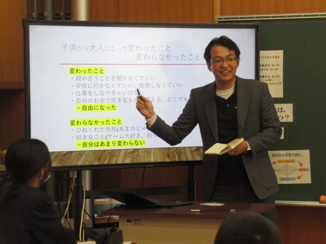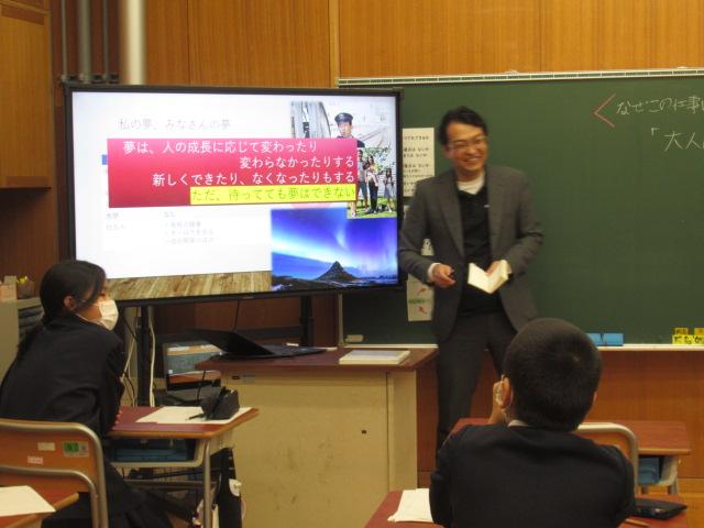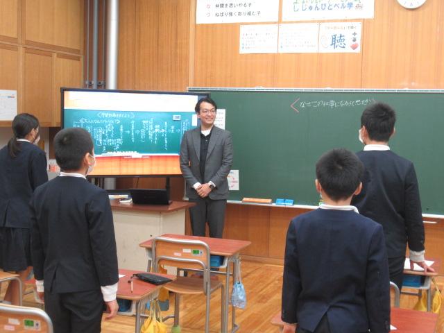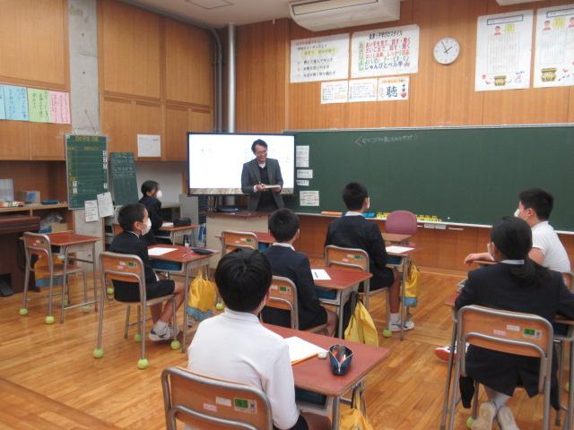 11/17(月) TANIDA㈱ 谷田恒平さんを講師にお招きし「大人になって変わること 変わらないこと」と題しお話しを聞きました。谷田さんは現在「NEDO 国立研究開発法人 新エネルギー産業技術総合開発機構」で研究に携わっており、子どもの頃からの夢とは違った仕事に就いていることにふれ、「夢は無理に作らなくてもいい」「自分が楽しいと思える仕事を」と話してくださいました。 6年生もこれからについて考えるきっかけになったようです。