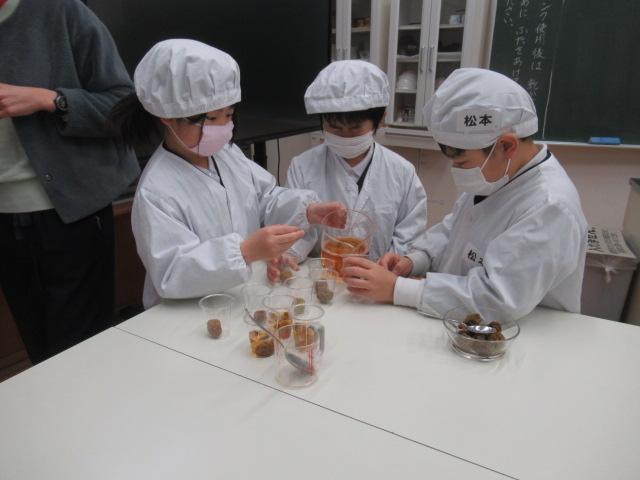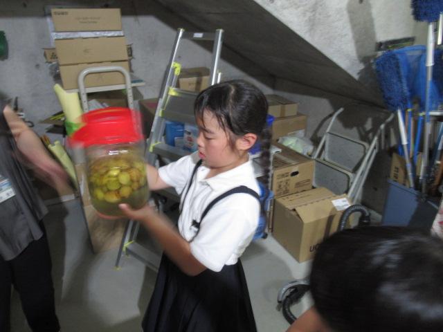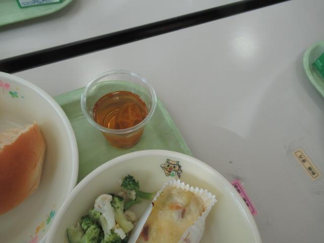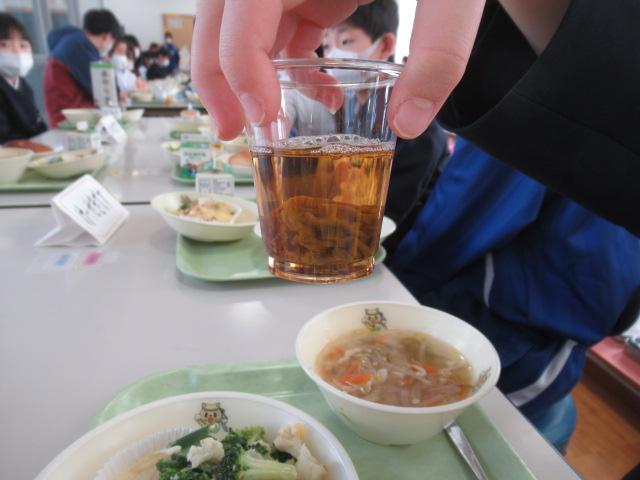 3年生が校舎横の梅の木から6月に収穫し、全員で一生懸命作った梅シロップが半年たち熟成され、とてもきれいな琥珀色になりました。その梅シロップをみんなで味わいたいと、3年生は一生懸命梅ゼリーを作りました。出来上がったゼリーは給食時間に全員で食べました。梅の香りがとても良く、とてもおいしかったです。半年間、梅からエキスが出てシロップが出来上がっていくのを見ていき、3年生にとってはとても思い出に残る活動ができたと思います。