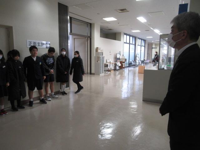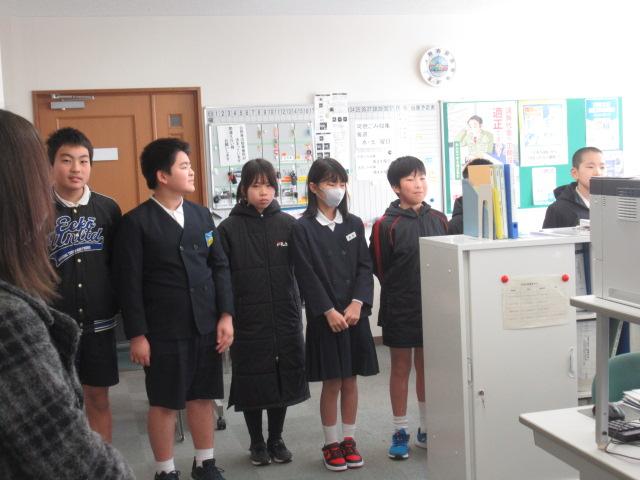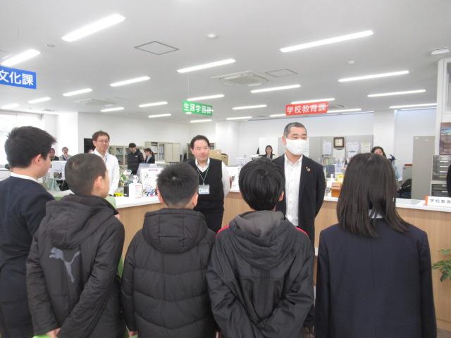 12/22(月) 6年生は6月からかほく市役所に「金津の森コーナー」と題して掲示物を5回掲示していました。その内容は金津小学校の特色や、金津の森の中の紹介、「金津の森フェスティバル」についてなど、毎回手書きで素晴らしい掲示物となっていました。そして掲示する期間も終わり、6年生は自分たちでお世話になった方々にお礼を言いに行ってきました。最後に教育庁舎に行き学校教育課長さんにもお礼を伝えたところ、「君たちが頑張ったこの活動は、これから中学・高校・大人になってもきっと心に残る活動になると思います」とお言葉をいただきました。 ご協力いただいた市役所の方々、ありがとうございました。