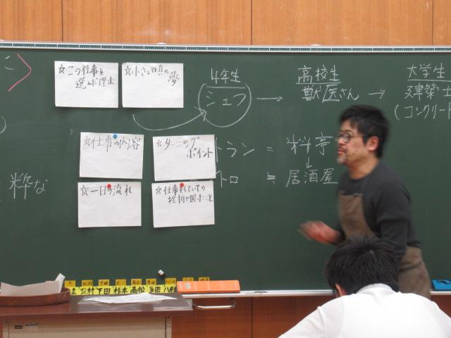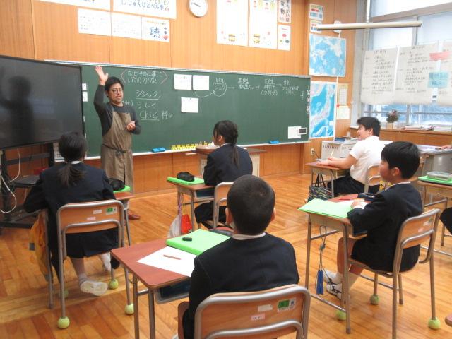 1/20(火)5人目の講師は、金沢市で「フレンチネオビストロ ラシック」をされているフレンチシェフ榊原隆志さんからお話しを伺いました。榊原さんは谷区にお住まいで、金津小学校の卒業生です。そして4年生の時に作った文集も持参してくださり、その文集にも将来はフレンチシェフになりたいと書いてあり6年生もびっくりしていました。「ラシック」という店名は「自分らしく」と、フランス語で「シック」は「粋な」から名前をつけたようです。お店の食材やこだわり、「お客様に喜んでいただくために」というお話しを聞くと榊原さんらしいお店を築いているんだなと感じる授業となりました。