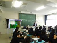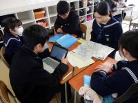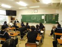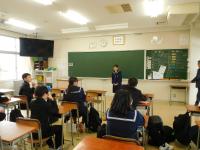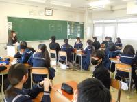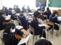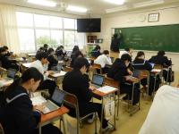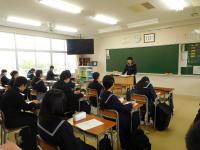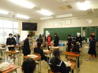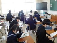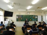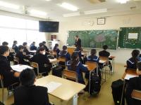 2年生の社会では四国新幹線が開通した場合の地域の変化について考えています。英語ではALTのライアン先生が帰国するため、最後の授業を行っています。長い間ありがとうございました。英国に帰国後は大学院で学び、眼科医を目指すそうです。美術では物語の1シーンを想像して絵を描いています。