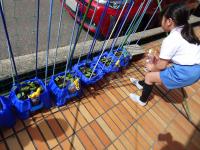 3年生「トントンどんどんくぎうって」とんかちでくぎを打って迷路づくり 1・2年生が遊んでいます