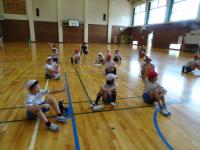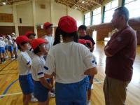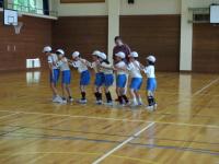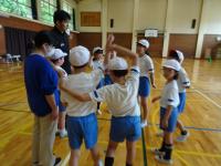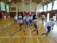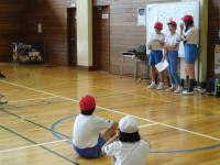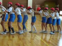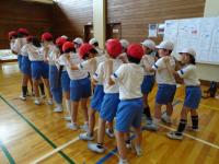 4年生~6年生のクラブ活動がありました。2チームに分かれて、足をひもで結んでむかでをつくりました。競争ではなく、力を合わせ協力して歩くことが目標です。「いち、に、いち、に・・・」とかけ声をかけて進みました。次第にうまく歩けるようになりました。