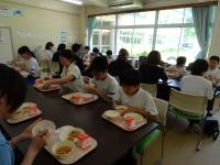 給食試食会では、親子いっしょに給食をいただきました。メニューは、ぶたにくのおいだれ・みそいため・すましじるです。授業参観では、1・2年生、3・4年生は道徳を5・6年生は体育を参観していただきました。そして、6限目はICTサポーターから、「インターネットはこわいもの」のお話がありました。インターネットは上手につきあっていけばとても便利なものなので、危険が潜んでいることをわかって使っていきたいです。
