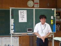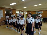 7月の全校集会がありました。まず、校歌を歌い、校長から「100ー1=0」のお話、生徒指導から7月の生活目標「ろうかを走らす歩こう」のお話、5・6年生から生活目標の取組について提案がありました。
