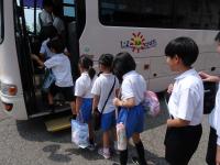 全校で町のバスに乗ってアザレアに水泳学習にいきました。4つのコースに分かれて学習します。暑い日だったので、水に入り気持ちよさそうでした。昨年より、水と仲良くなったり、長く泳げるようになったりできるといいです。