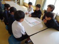 1年生をむかえる会を2年生が計画して開きました。2年生が手づくりのペンダントなどをプレゼントし、たから(おりがみでつくったペンギン)さがし、むかしあそび(けんだま・めんこ・こま)をしてなかよく楽しみました。2年生の1年生へのやさしさがたくさん見られました。最後のふりかえりでは、全員発表できて花まるです。